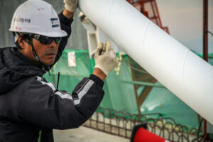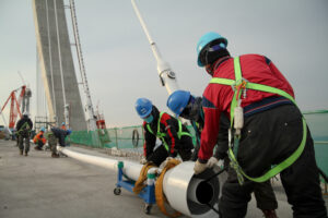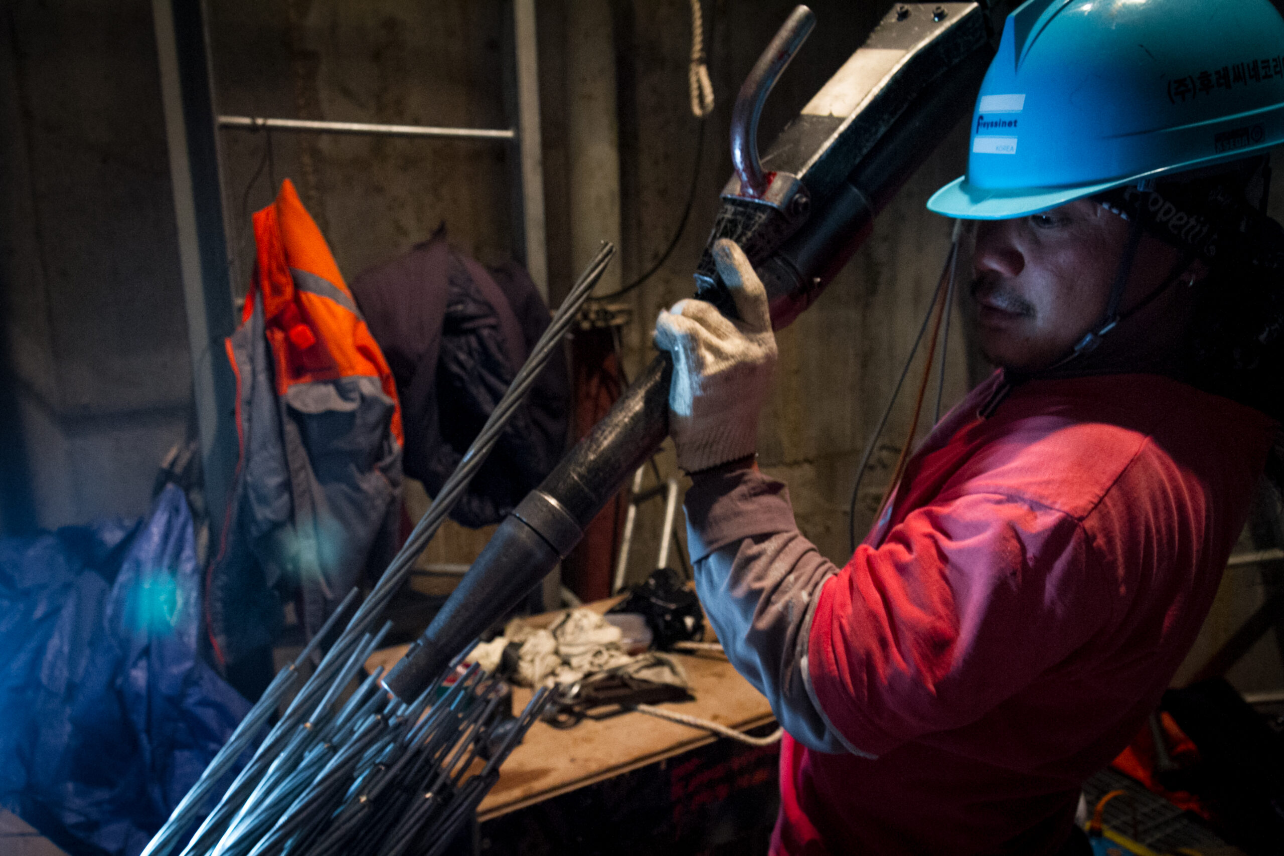 Connection of the suspension cables took place within the pillars. These areas were very confined and poorly lit.