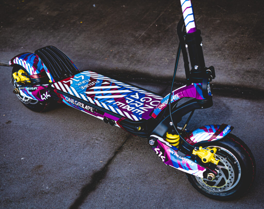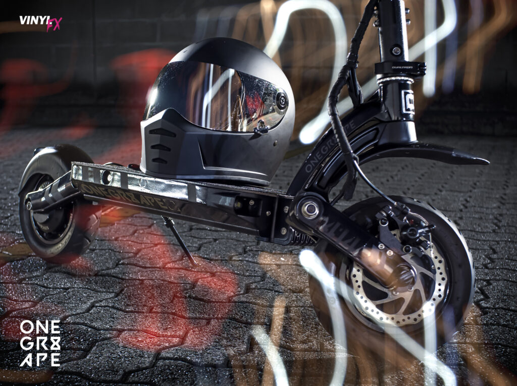 Vinyl FX by ONEGR8APE are premium E-Scooter decal kits. They are the fastest, easiest way to dramatically customise an e-scooter.